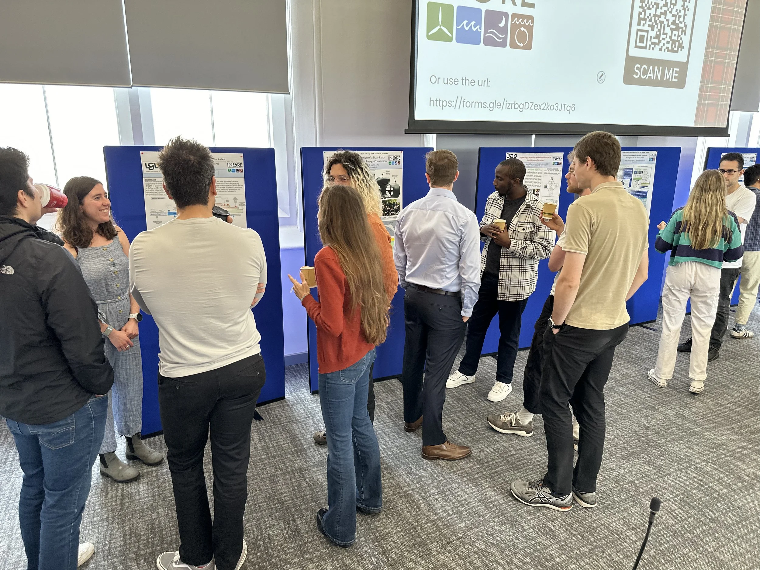 Tuesday began with breakfast before moving into the first round of INORE research presentations and poster sessions. These sessions showcased innovative research, from biofouling detection on tidal turbines to control optimization of floating offshore wind turbines. These presentations sparked engaging discussions among attendees working across marine and renewable energy fields.