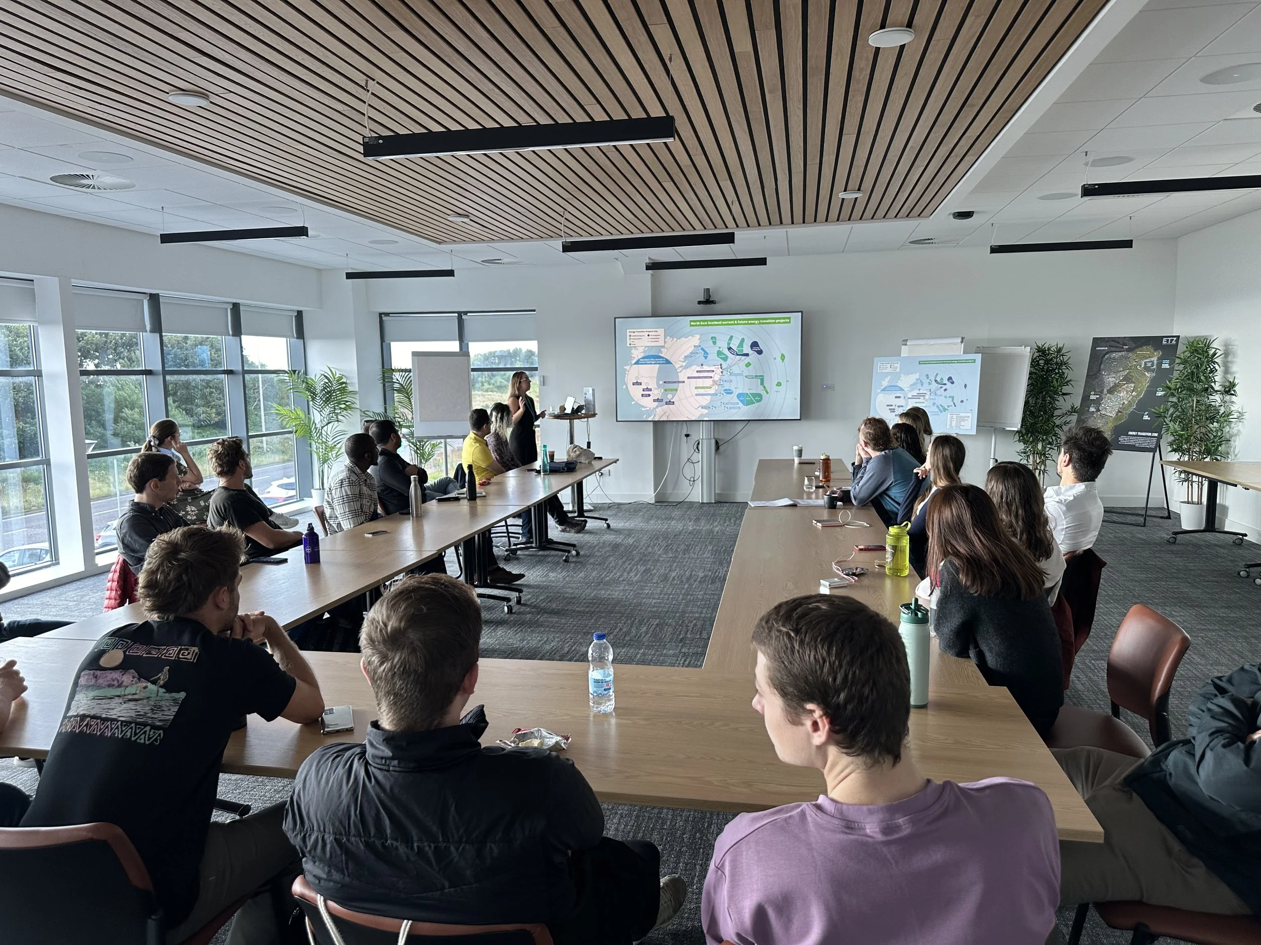 The welcome session set the tone for the week, highlighting the combination of research discussions, technical site visits around Scotland, and social events planned for attendees. The evening wrapped up with some free time, when the attendees chose to swim in the ocean (with the Aberdeen Bay Offshore Wind Farm in the background) and relax by a bonfire.