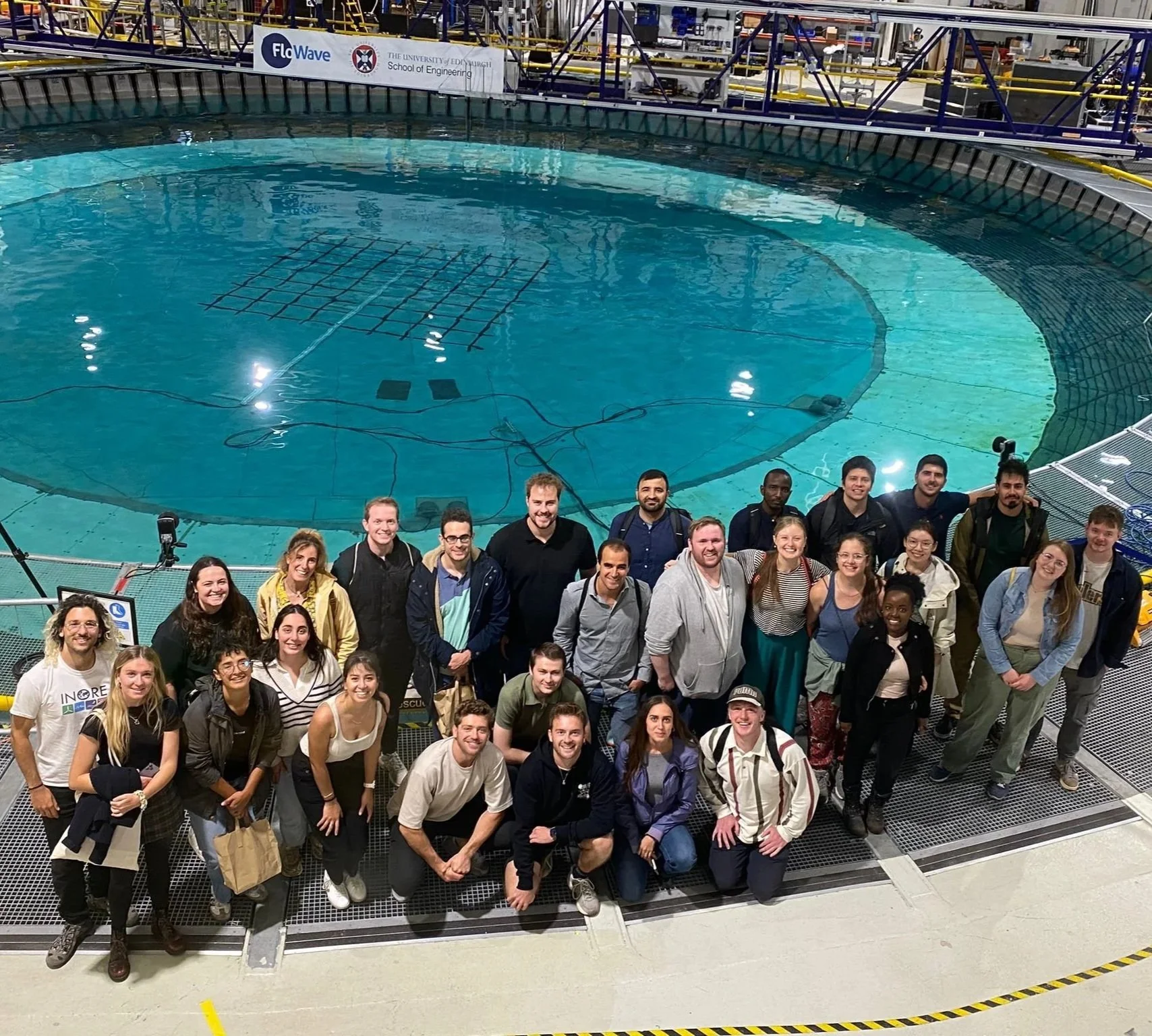 We then visited FloWave’s unique circular wave and current tank and how it is used to simulate real ocean conditions for testing marine renewable energy devices. These tours provided valuable insight into experimental research and collaboration between academia and industry.